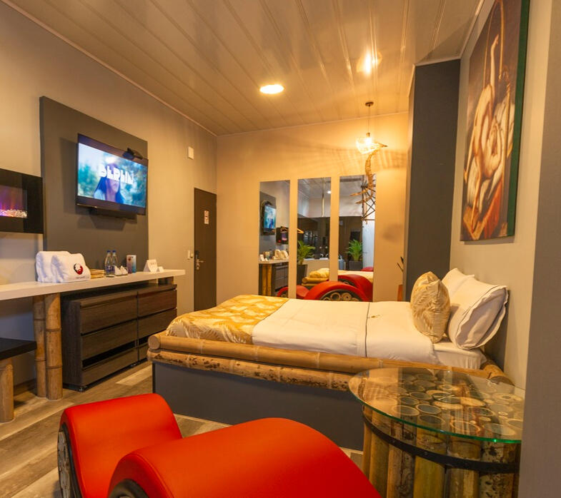 Sumérgete en una experiencia diferente donde la tranquilidad de la naturaleza y el confort se combinan en espacios diseñados en bambú. Disfruta de jacuzzi privado, sauna, turco y un spa pensado para que te desconectes del mundo y te reconectes contigo y con quien amas.